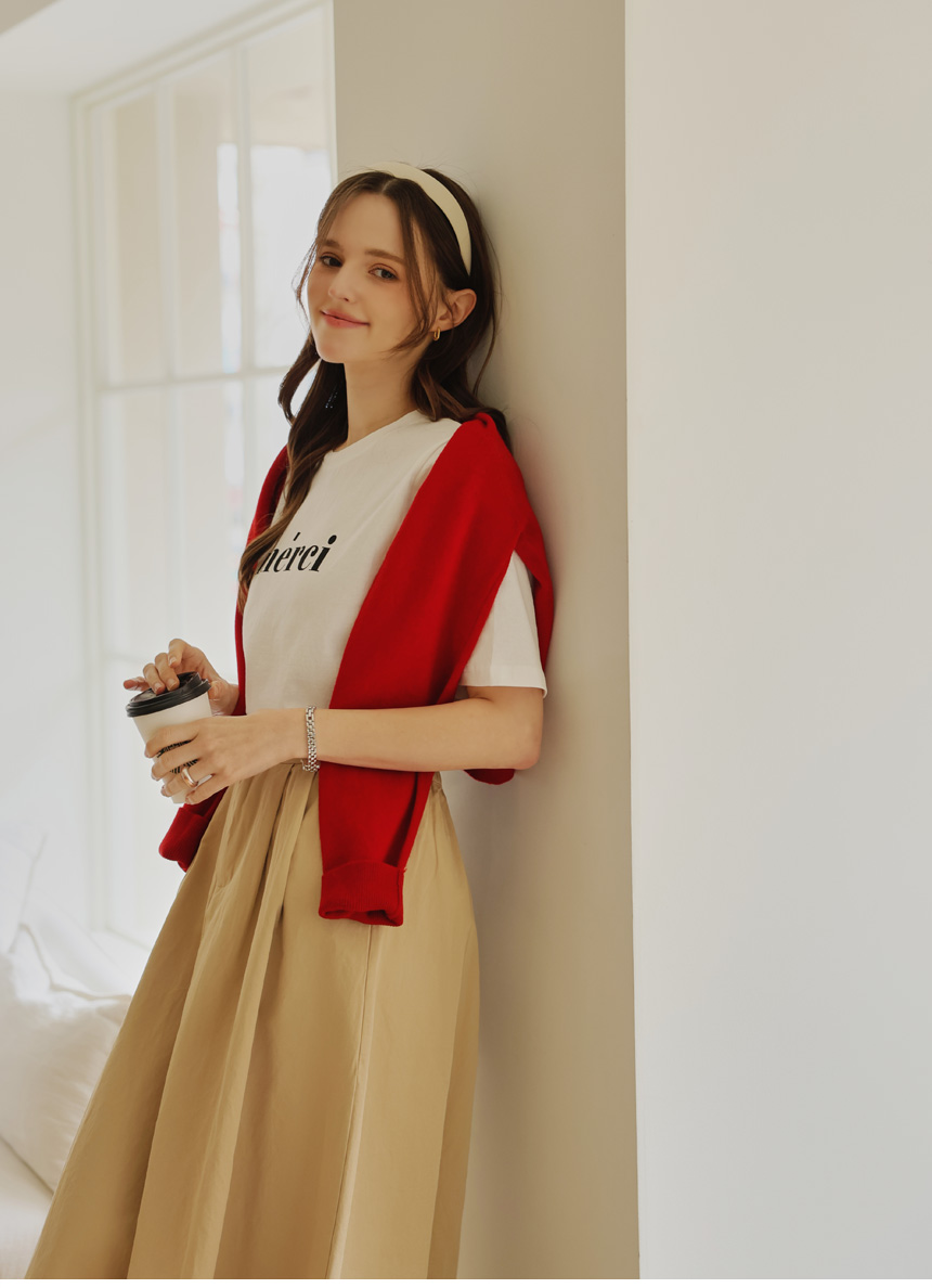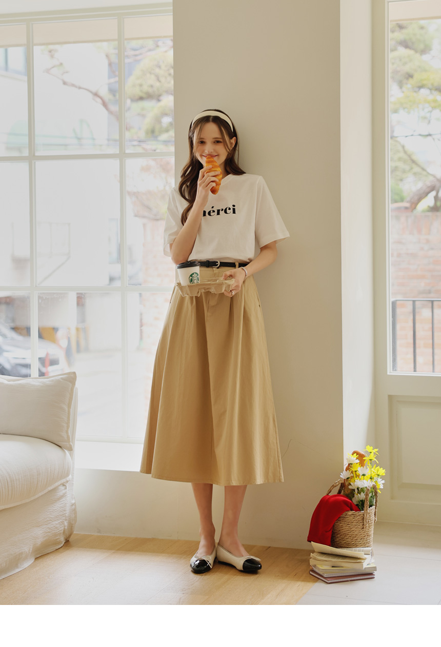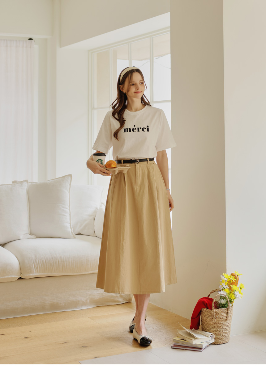 A casual round tee completed with a neat English key point