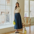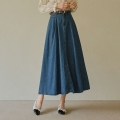 Belt Set Cut Flare Denim Skirt