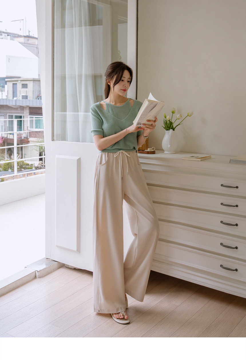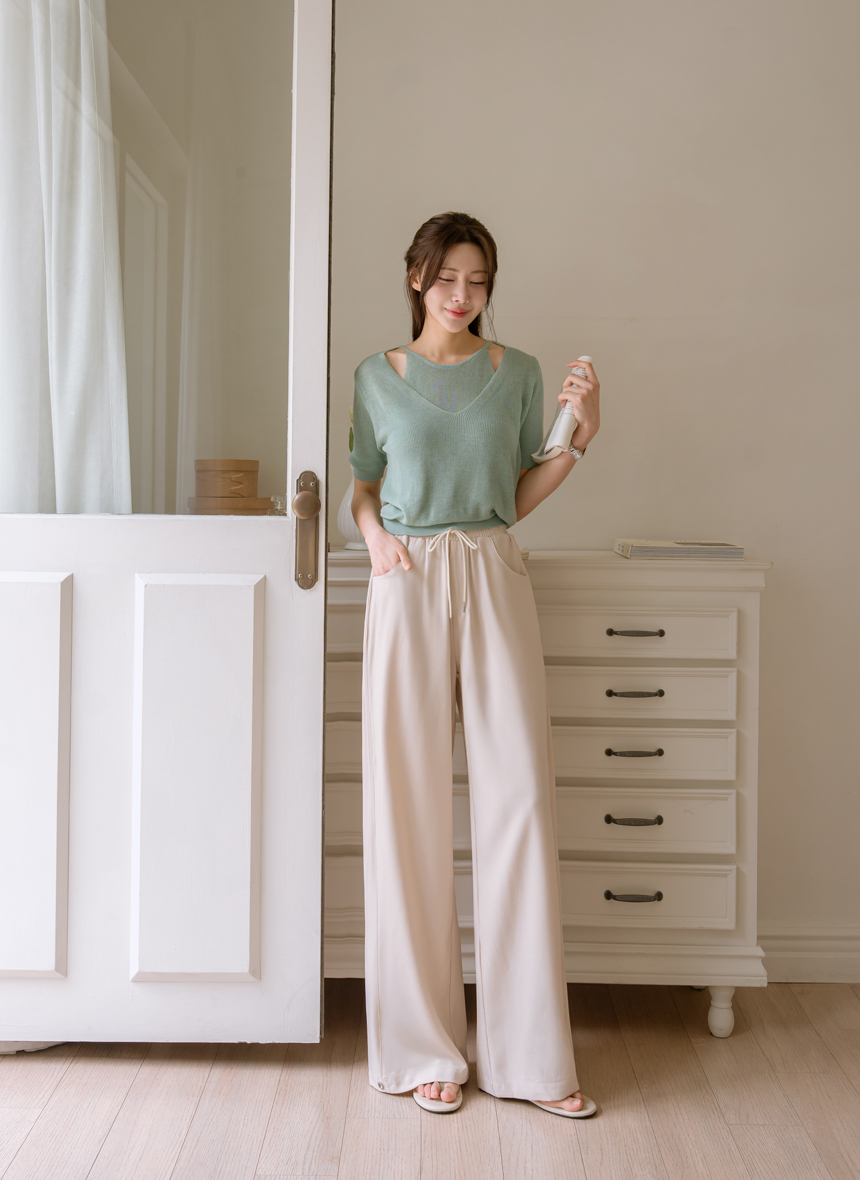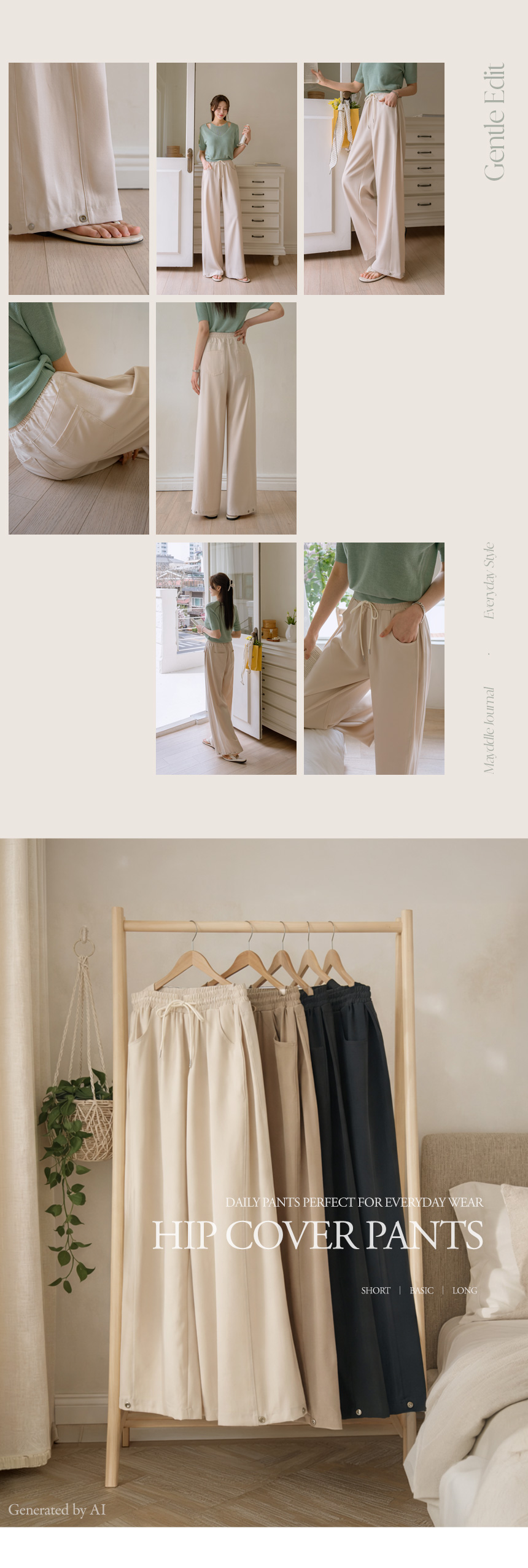 - home > MAYDDLE PLUS > Bottom > 3-Type Folding Waist Slacks for Large Hip Cover