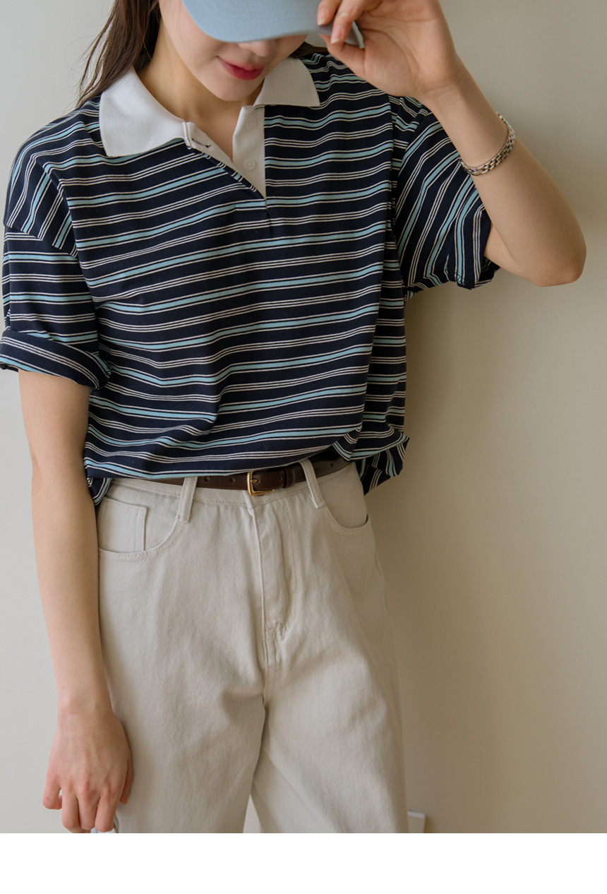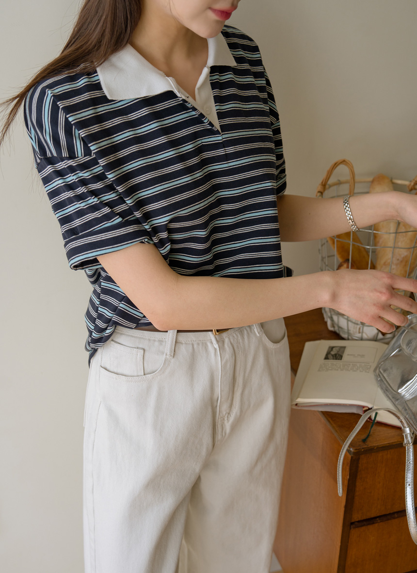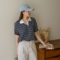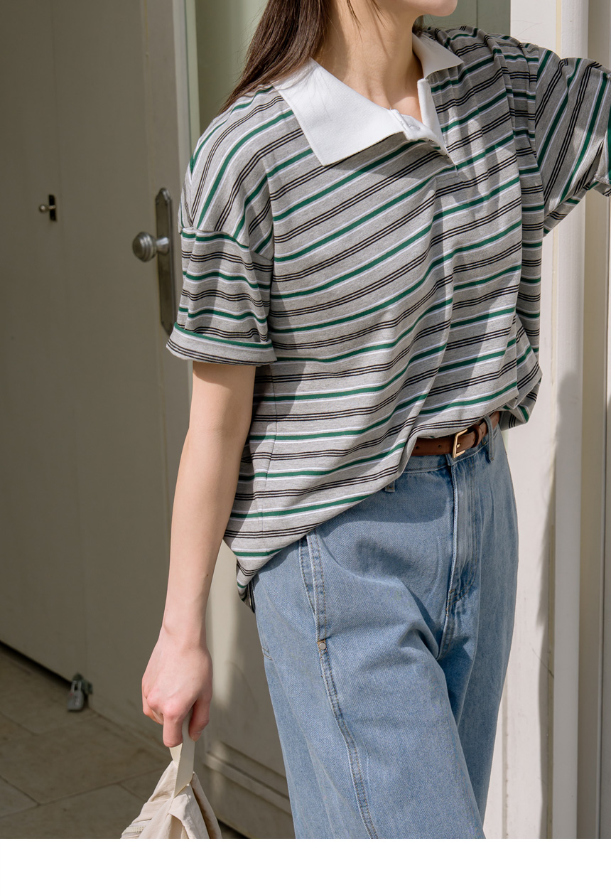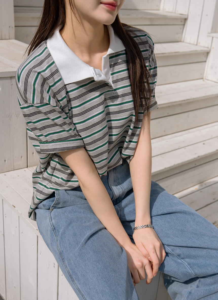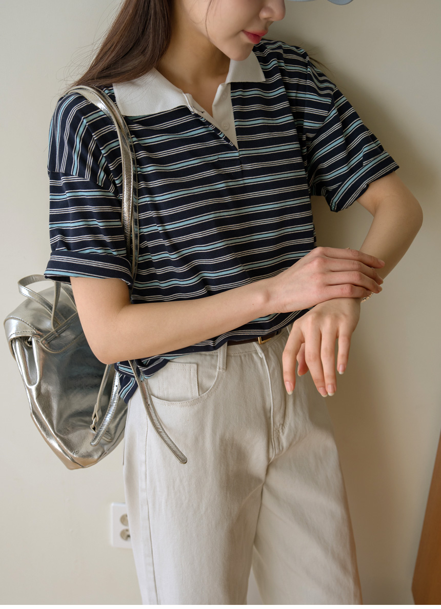 Colored striped collared short-sleeve tee