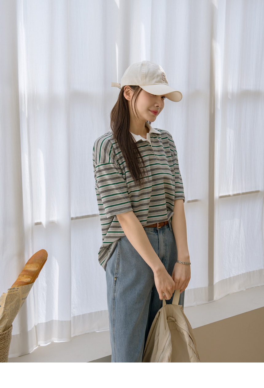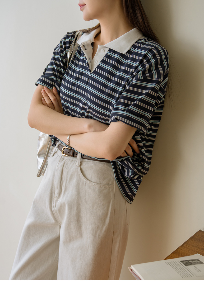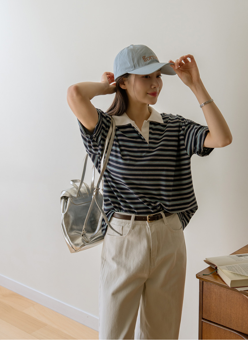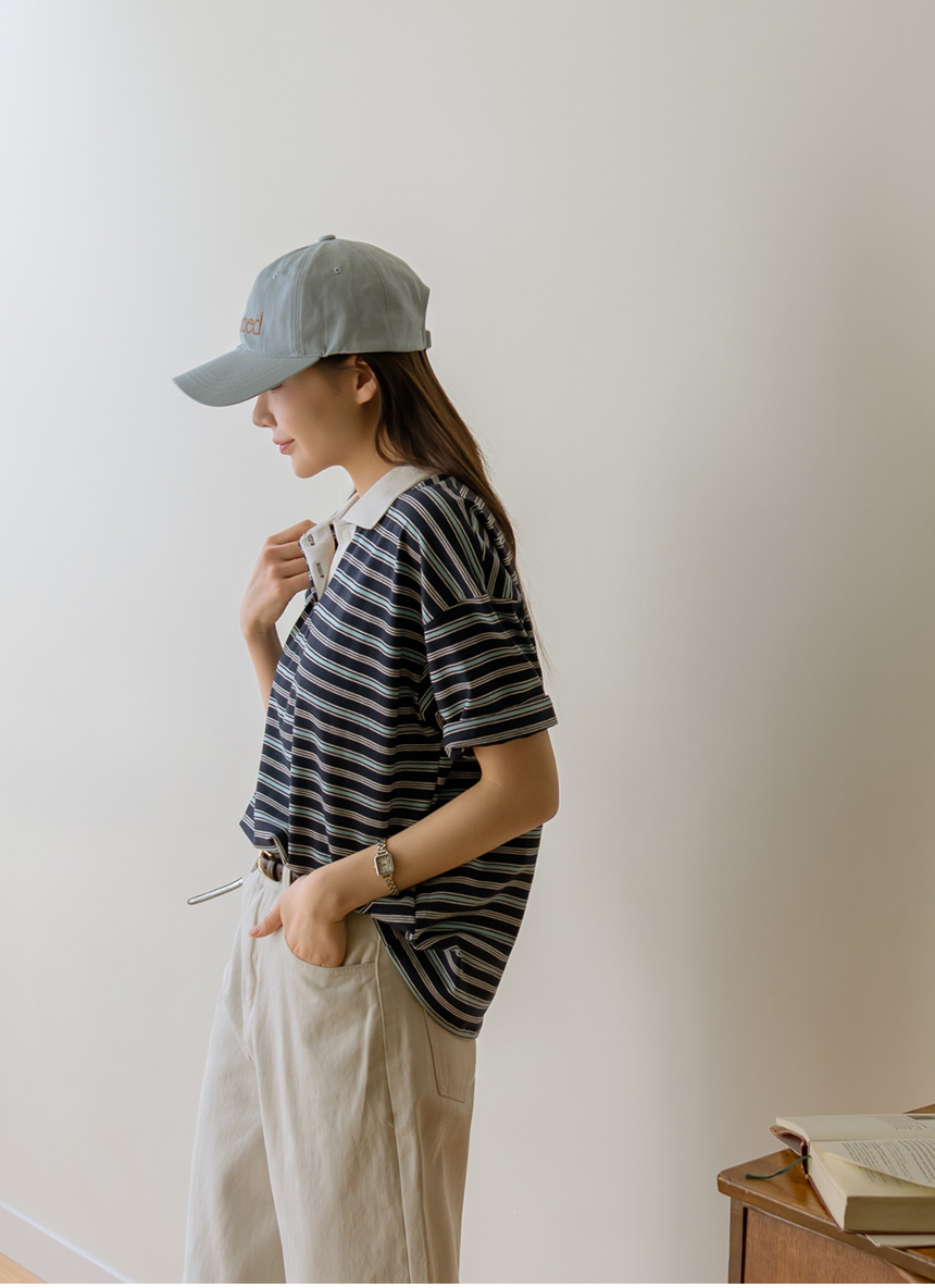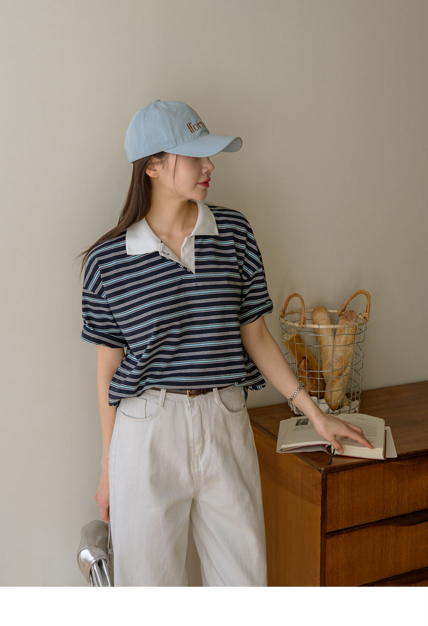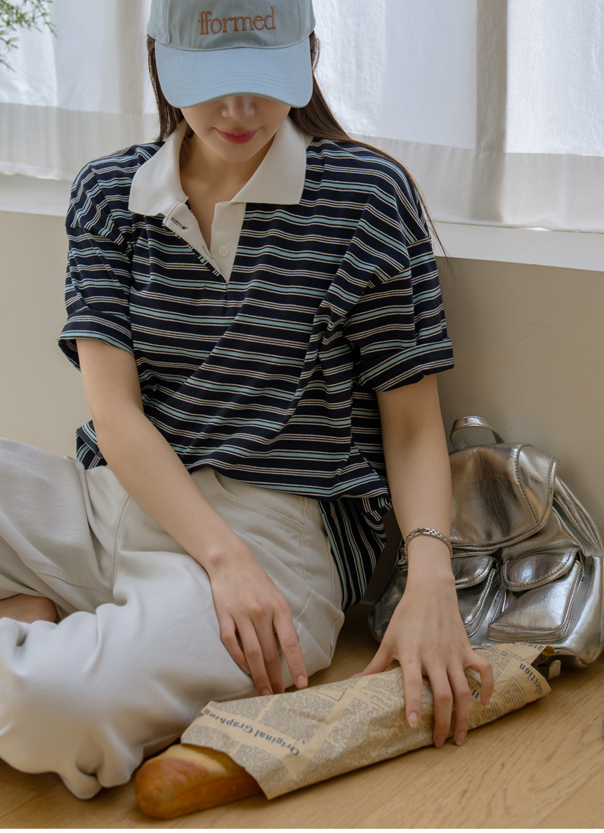 Colored striped collared short-sleeve tee