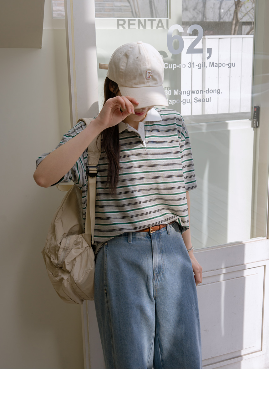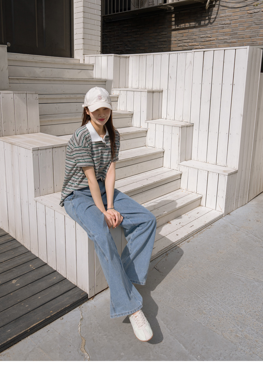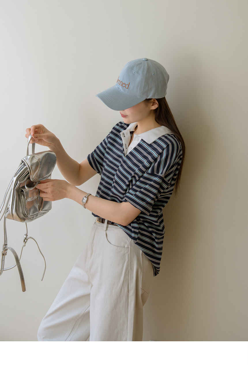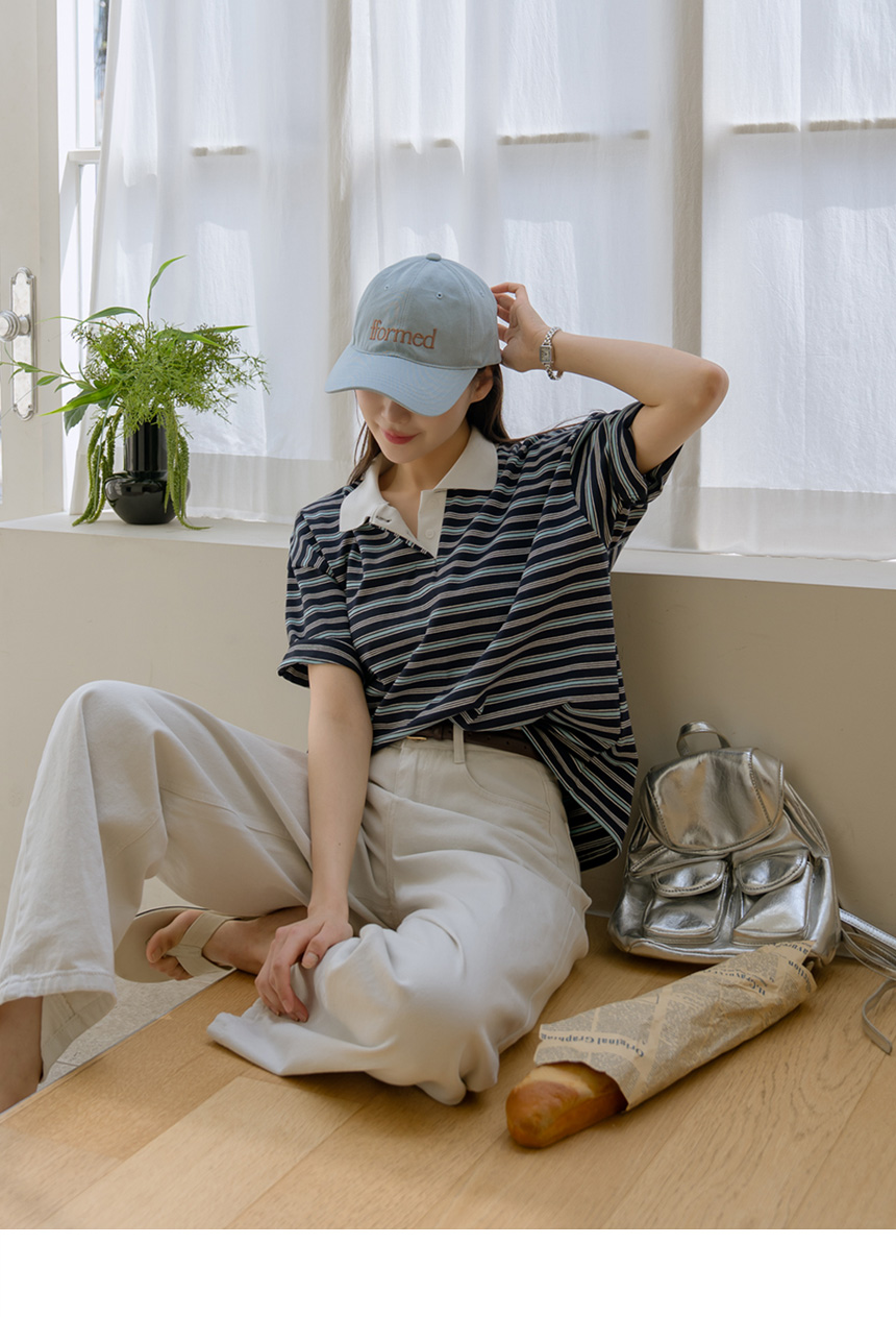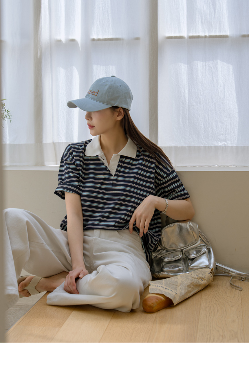 Colored striped collared short-sleeve tee