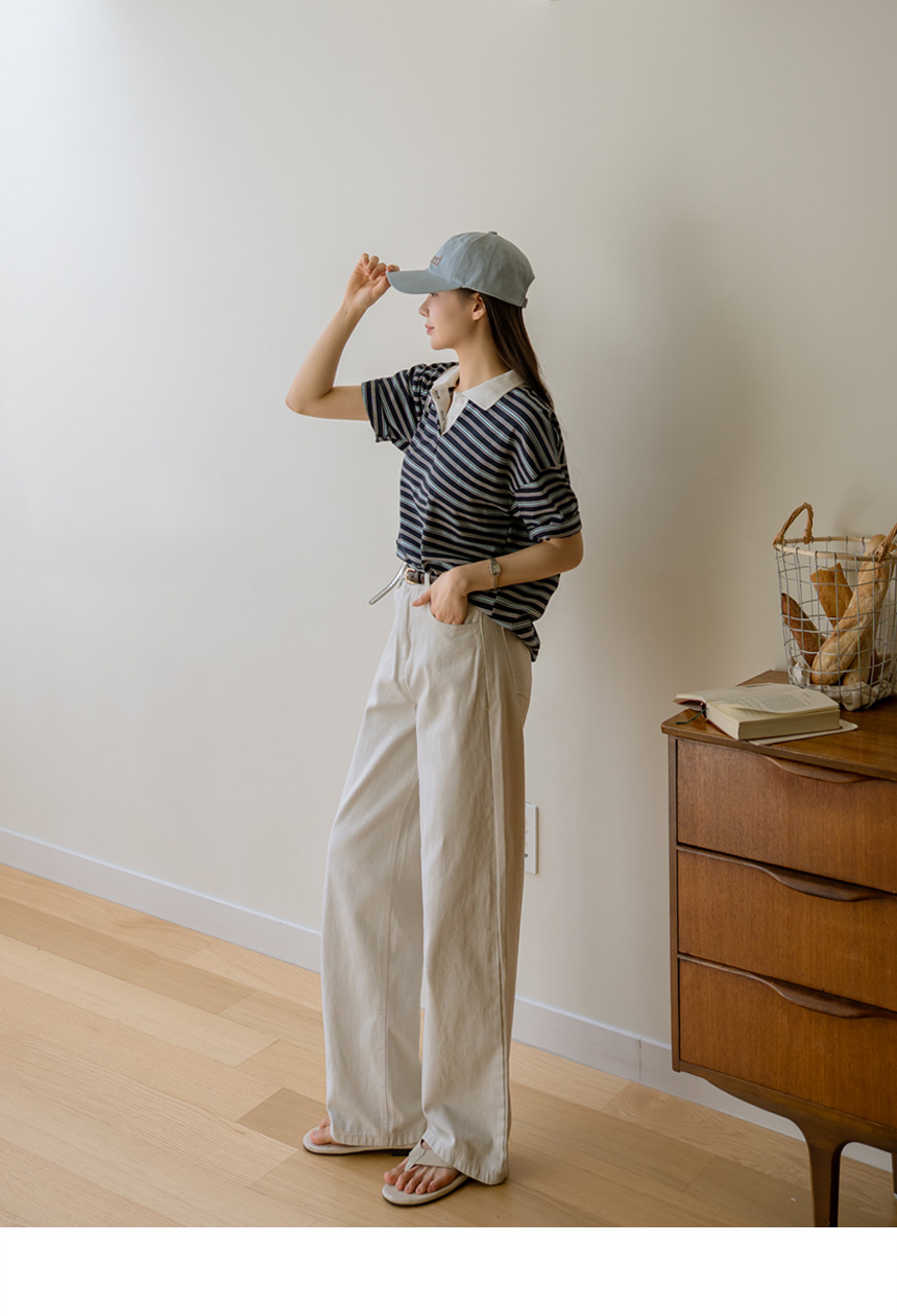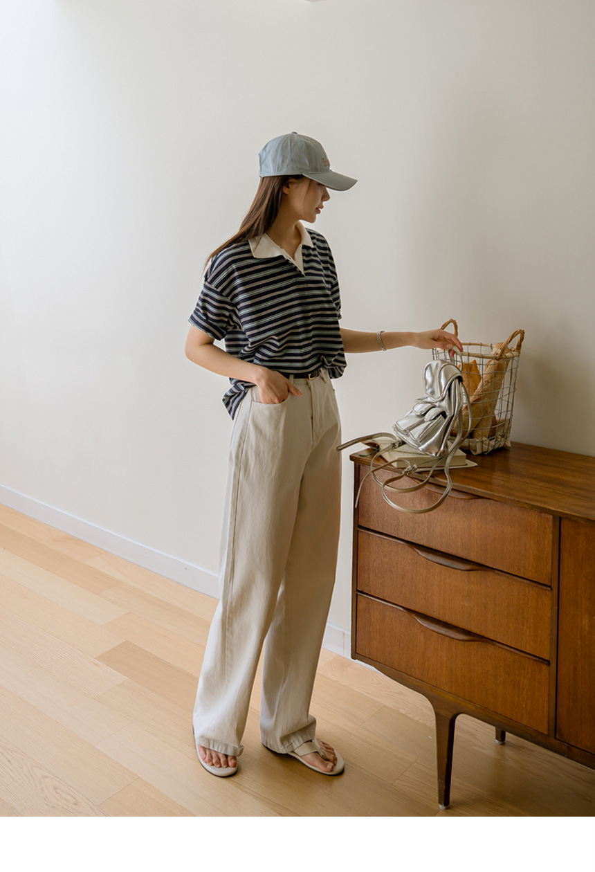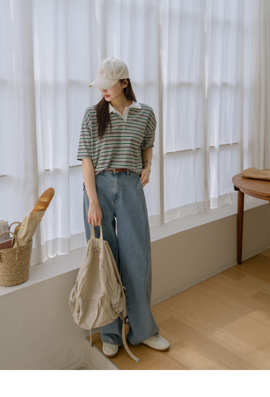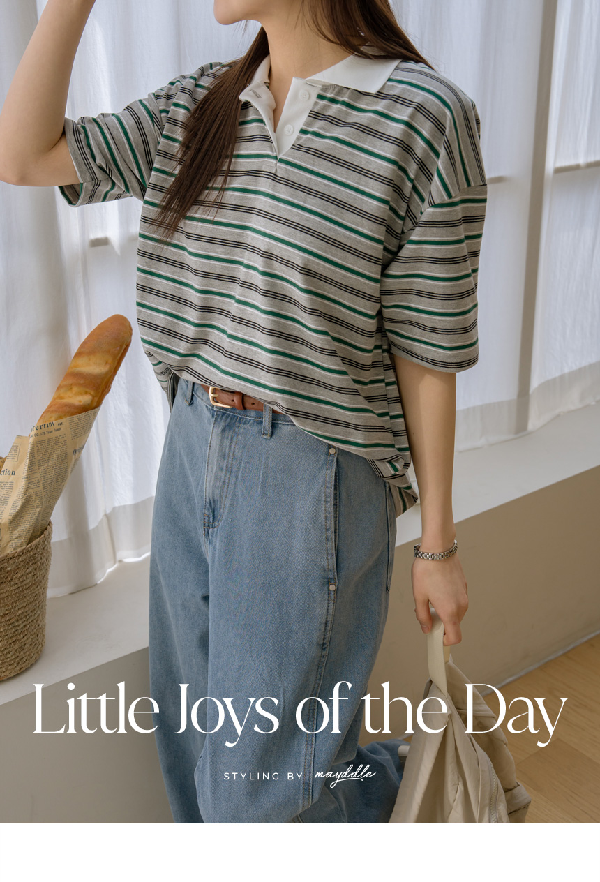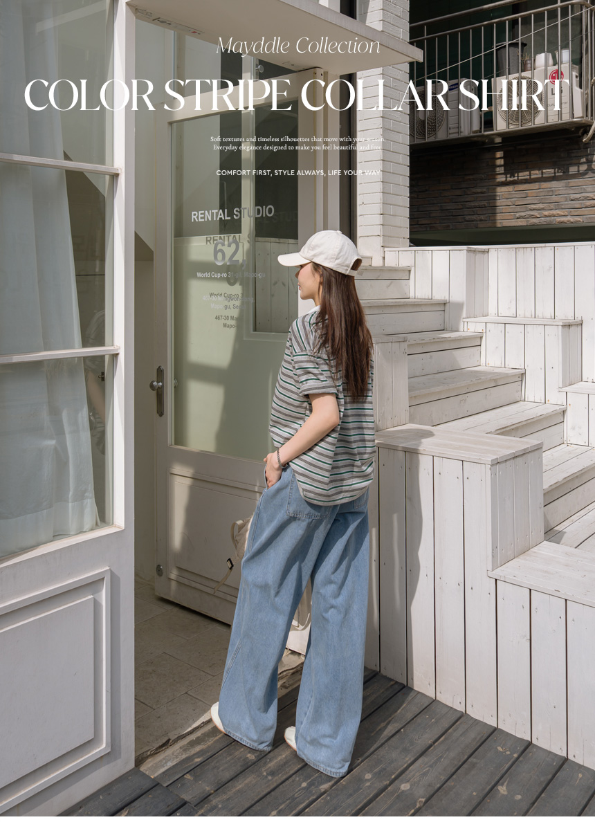 Colored striped collared short-sleeve tee