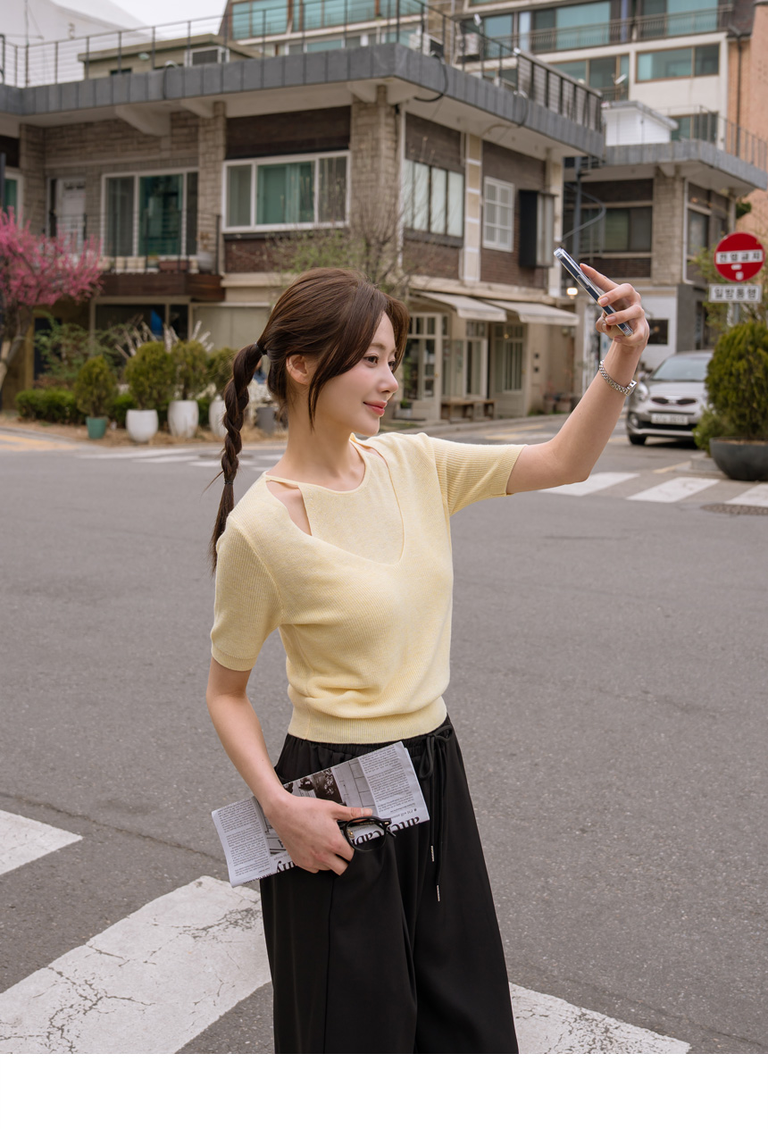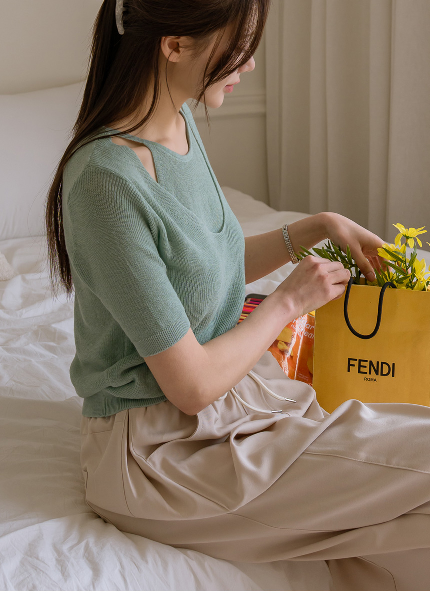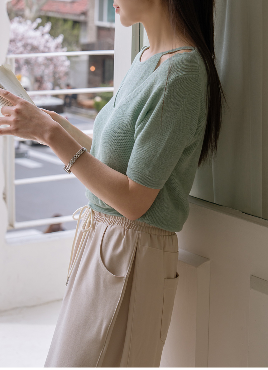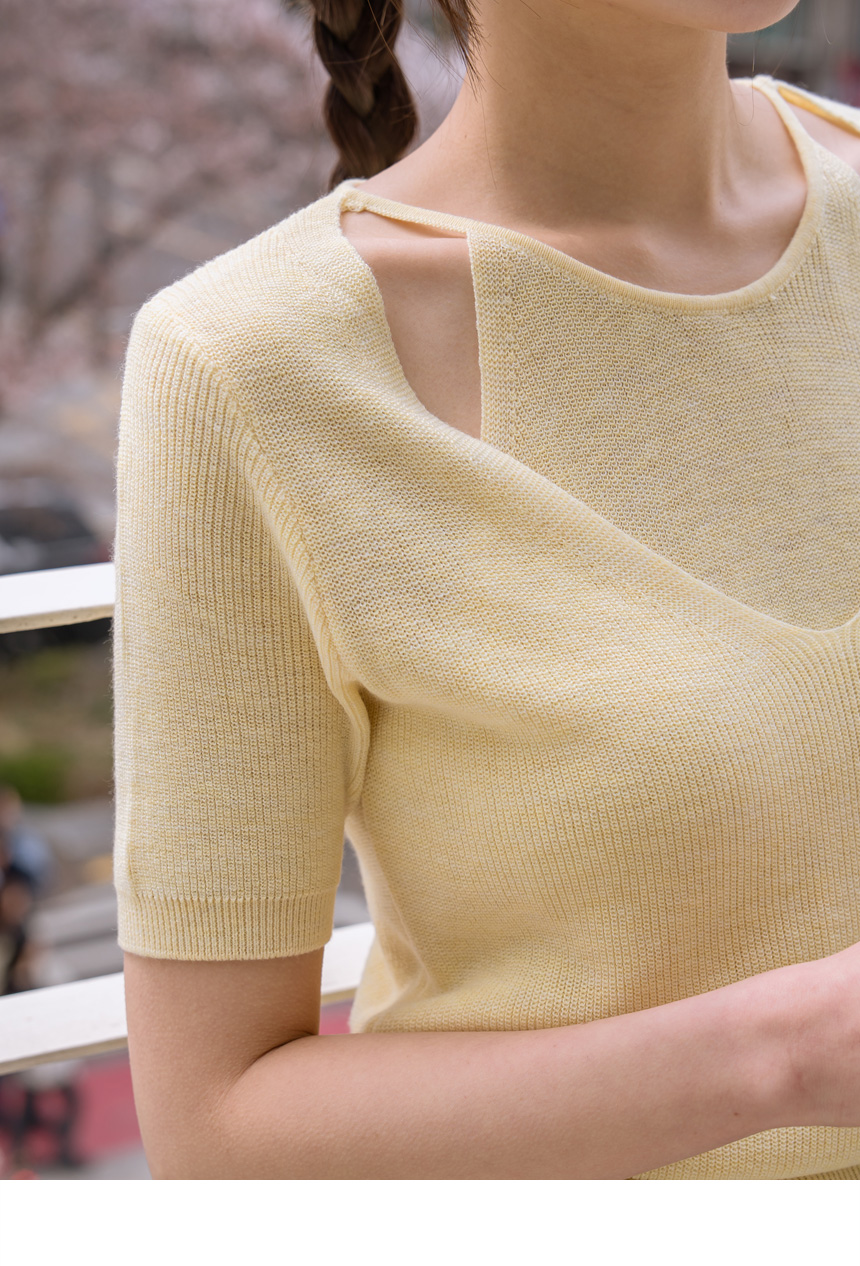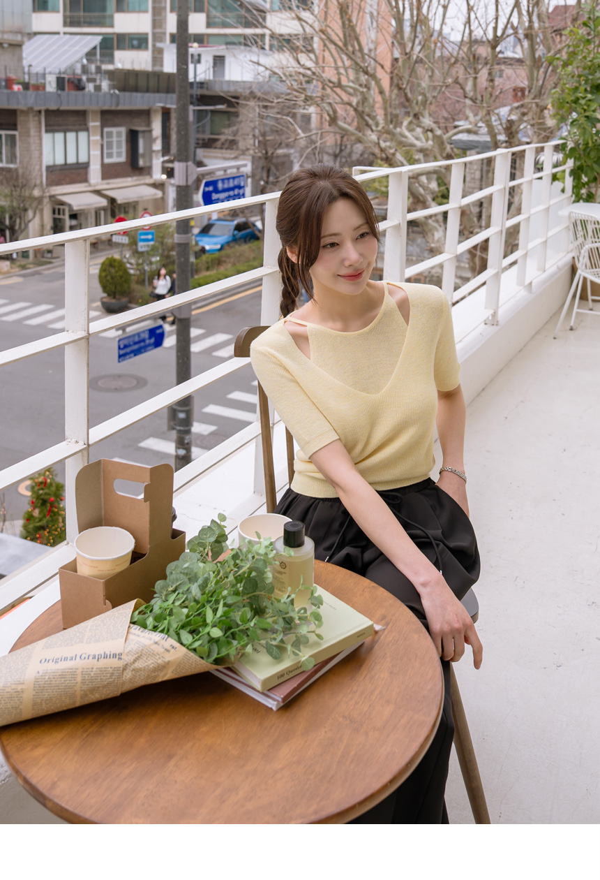 With layered color blocking and shoulder cutouts