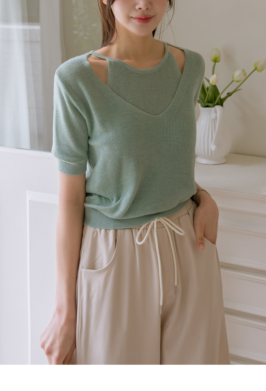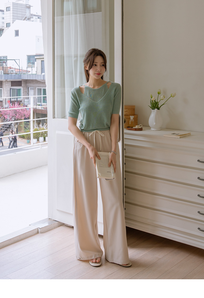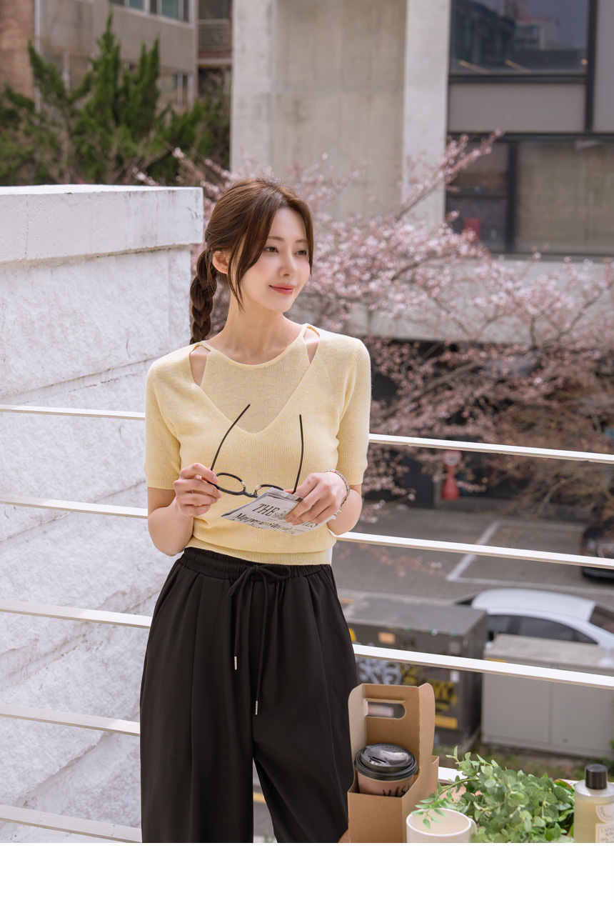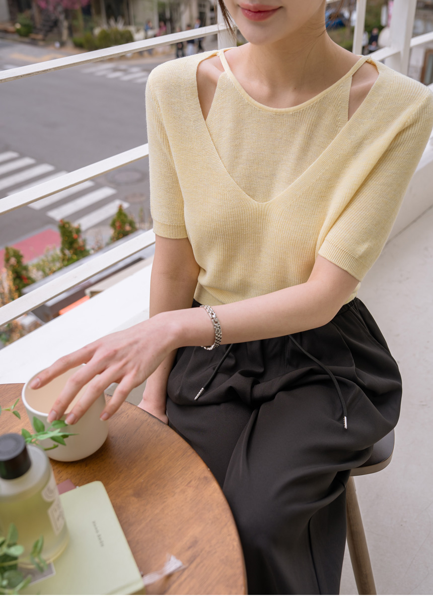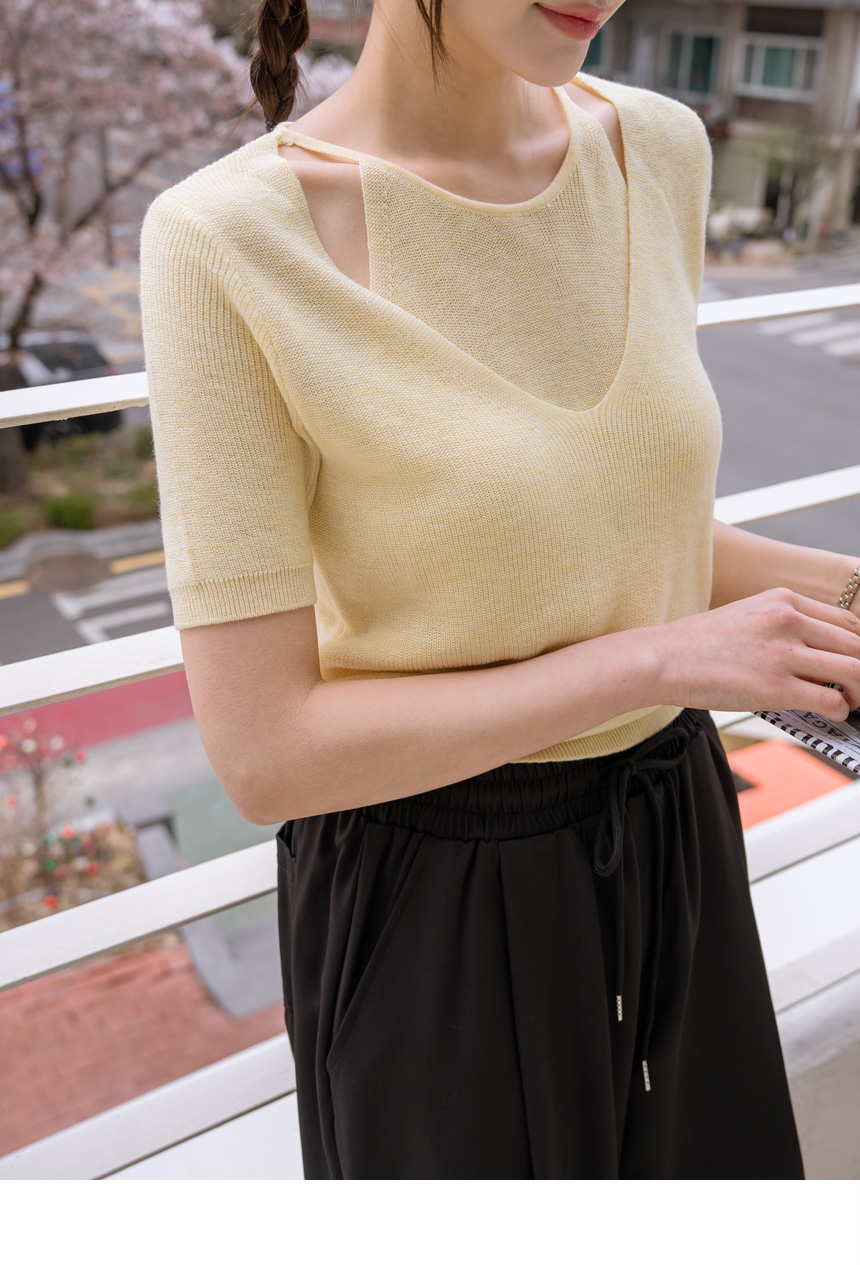 Layered color-block slit knit