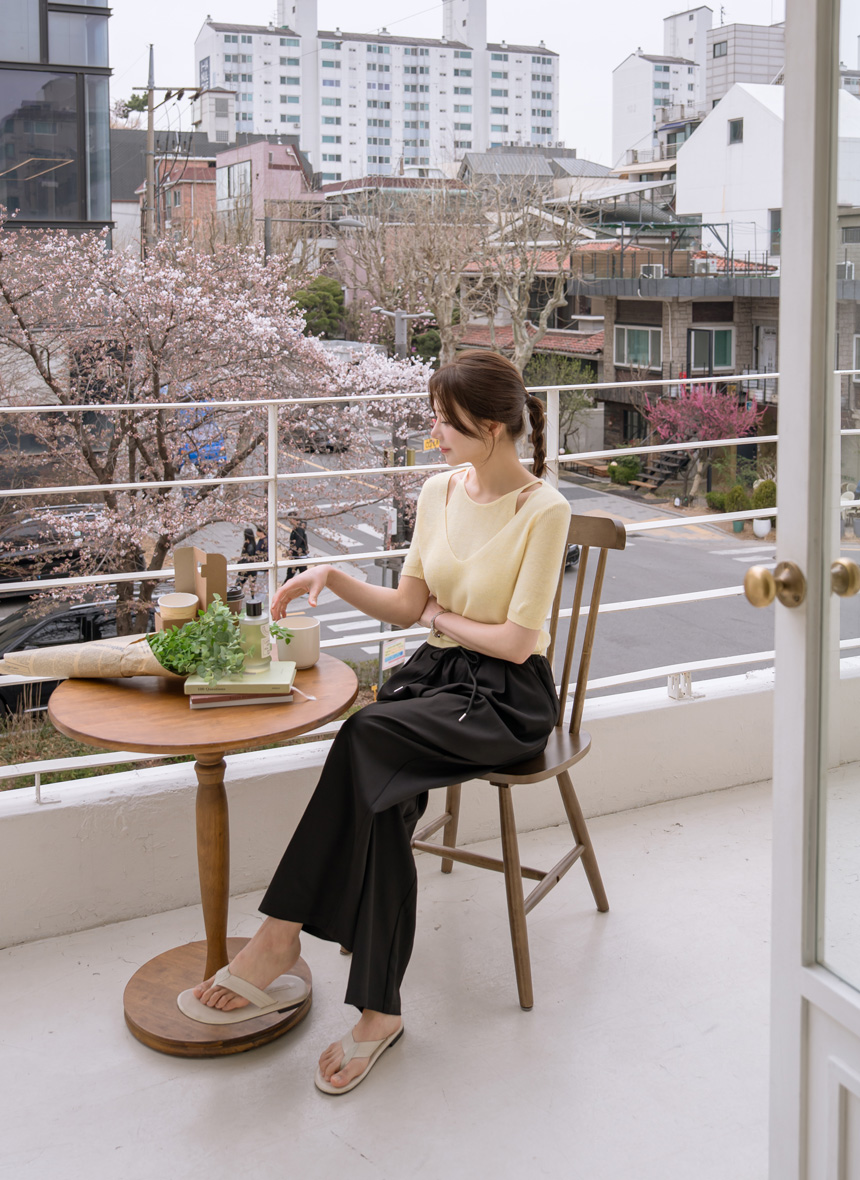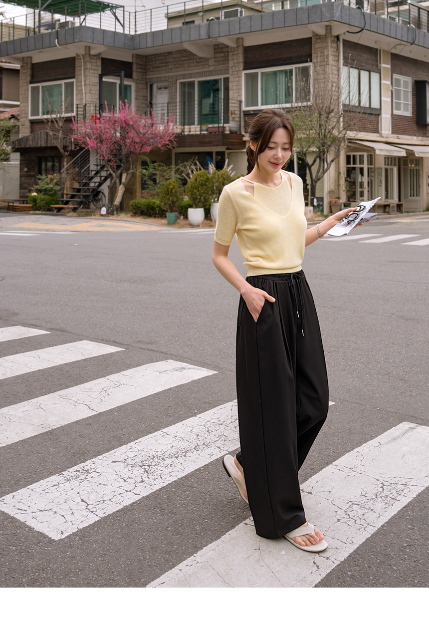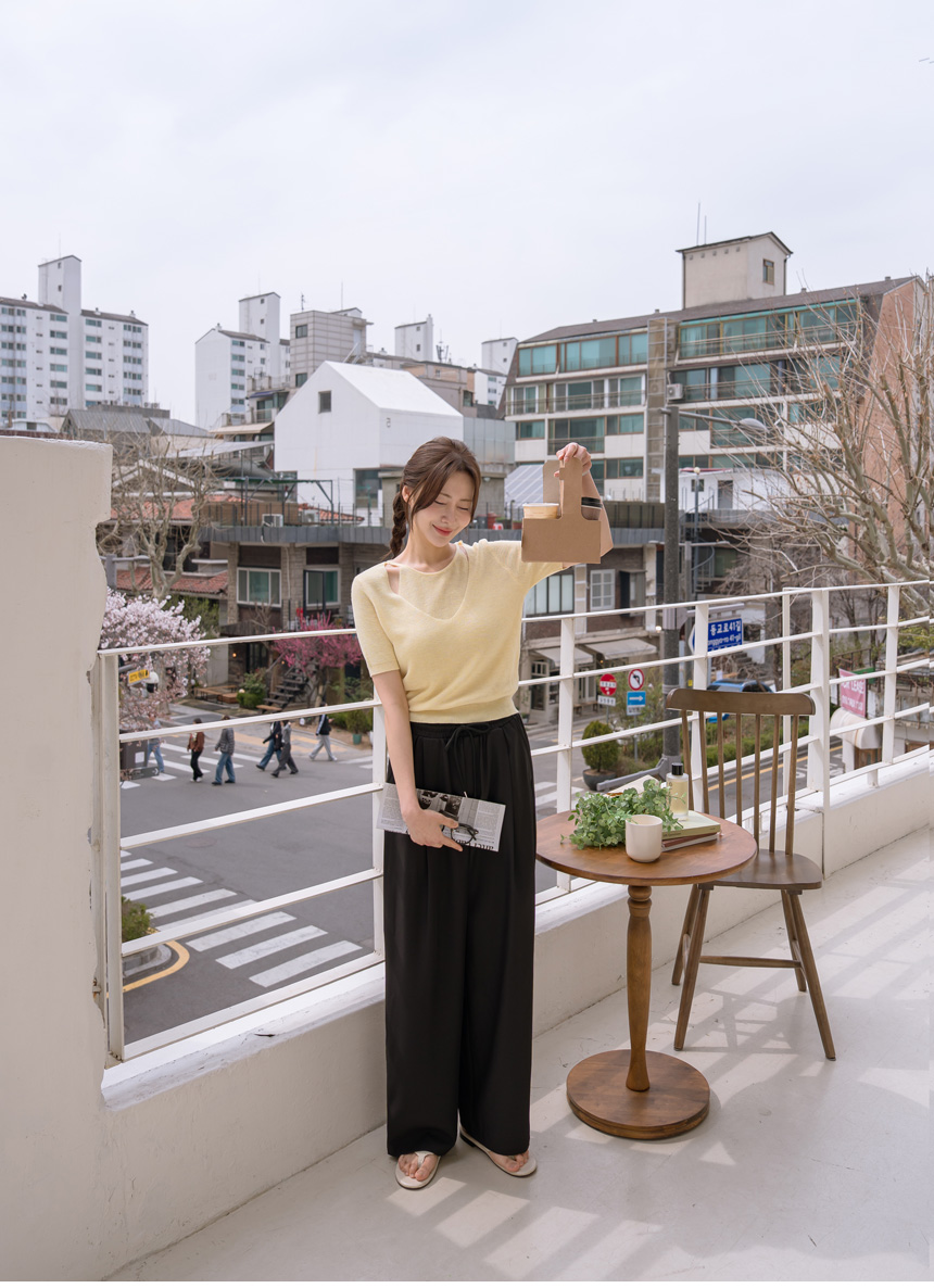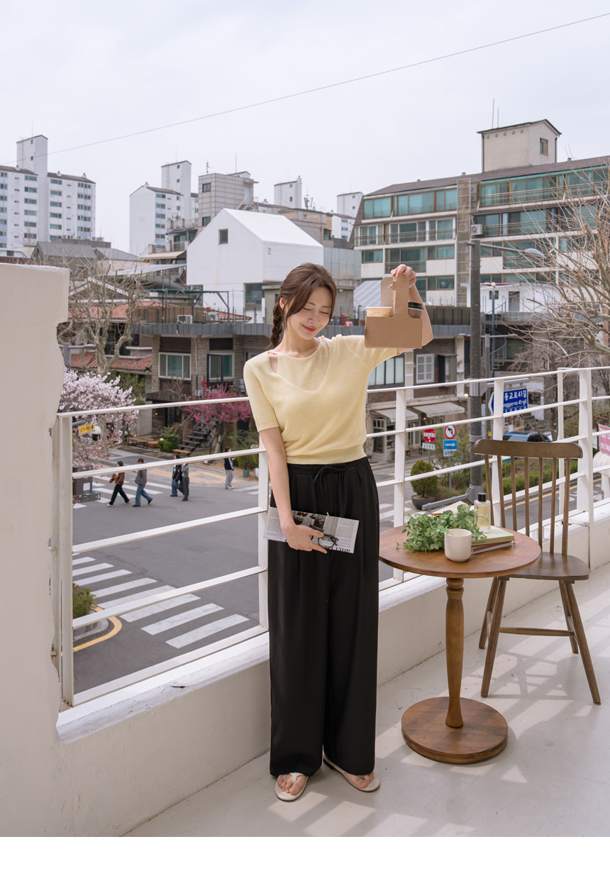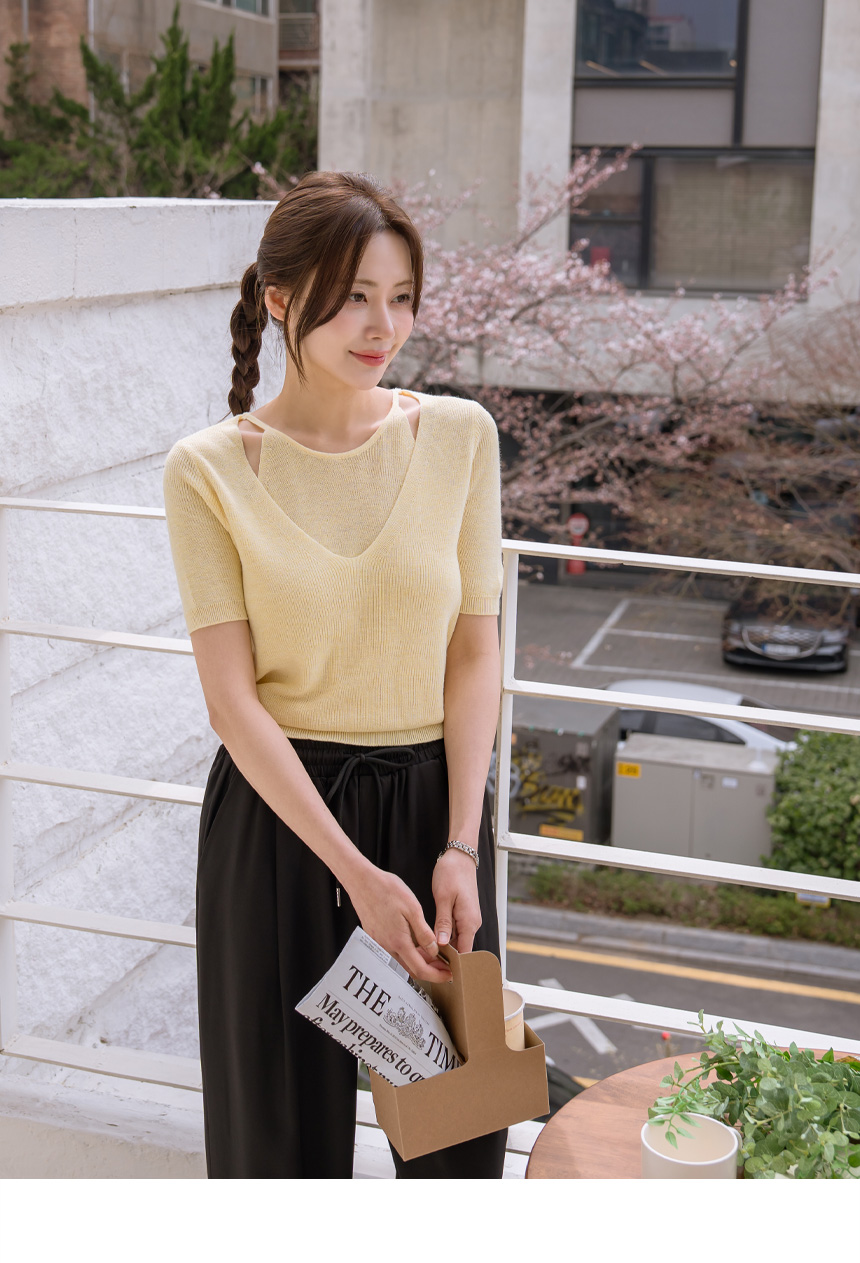 Layered color-block slit knit