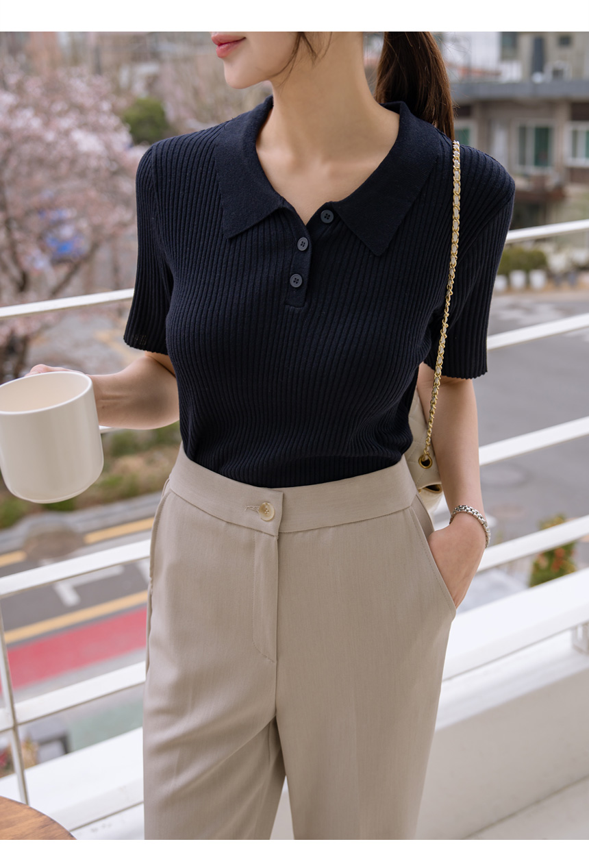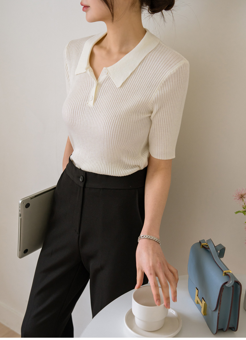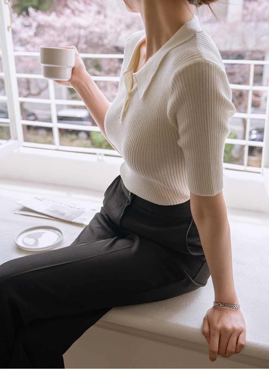 slimline Span ribbed collar knit