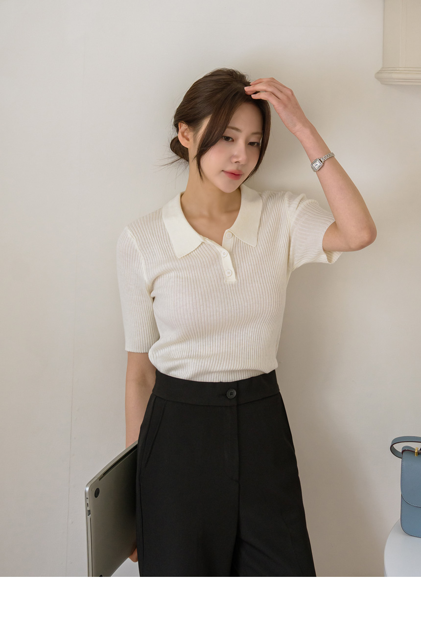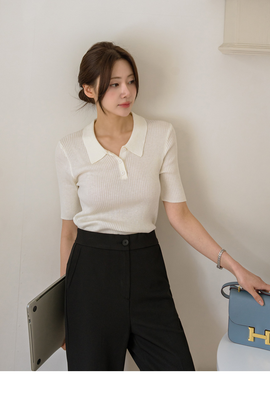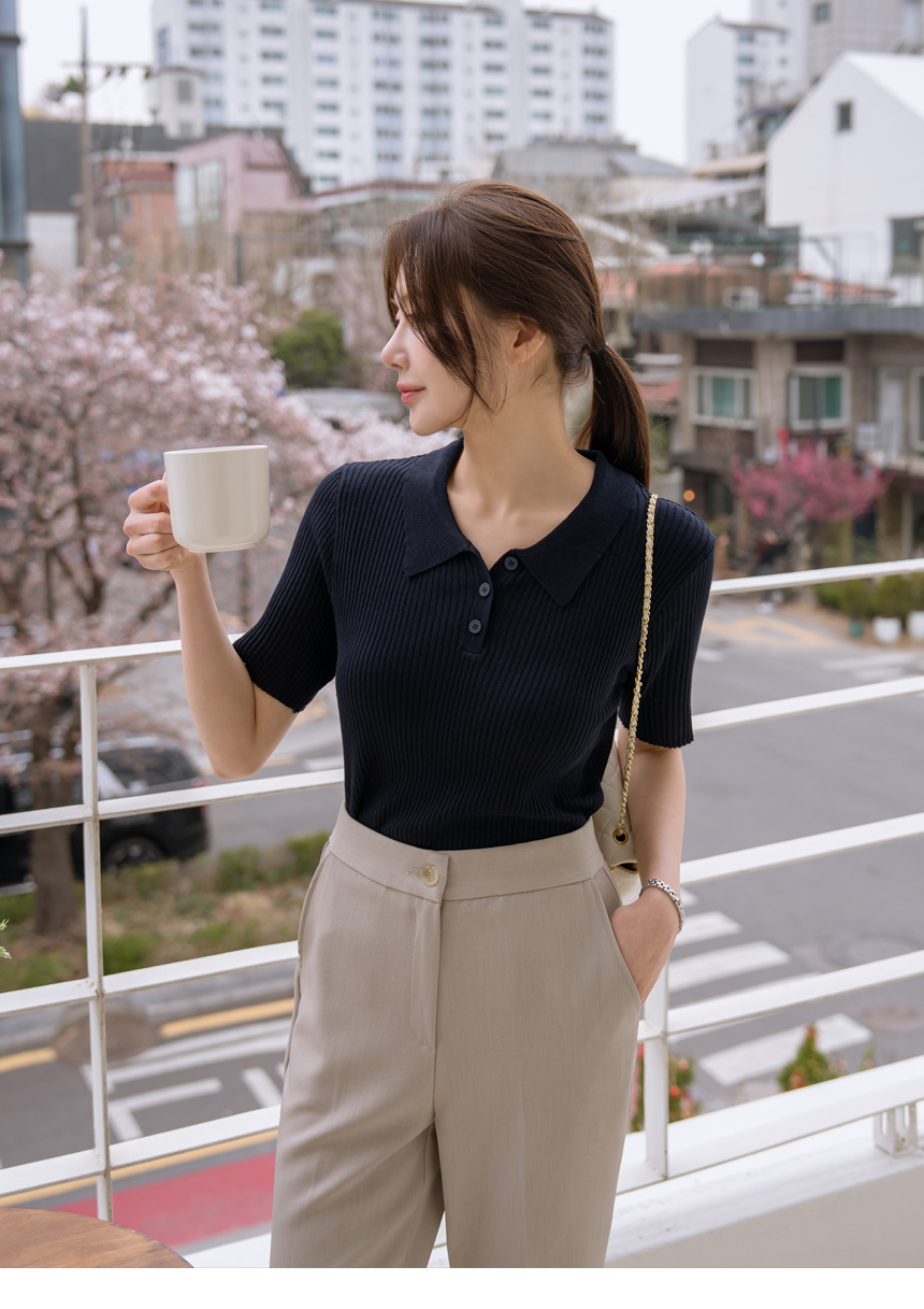 slimline Span ribbed collar knit