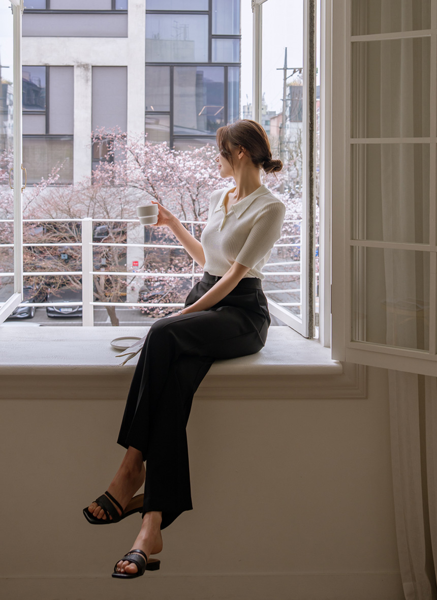 Slim Fit Span Knit with a collar for a neat look